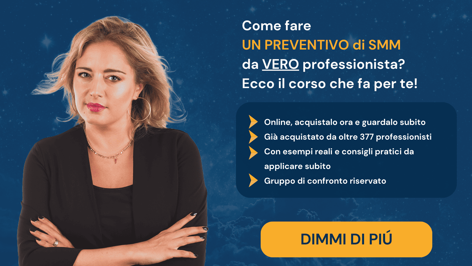 Queste “voci” possono significare poche ore di lavoro al mese come moltissime e, come ti spiego in modo dettagliato nel corso Come fare un preventivo di Social Media Marketing dalla A alla Z (dove vedi anche un esempio reale di preventivo!), fondamentale è anche come presenti i tuoi servizi.